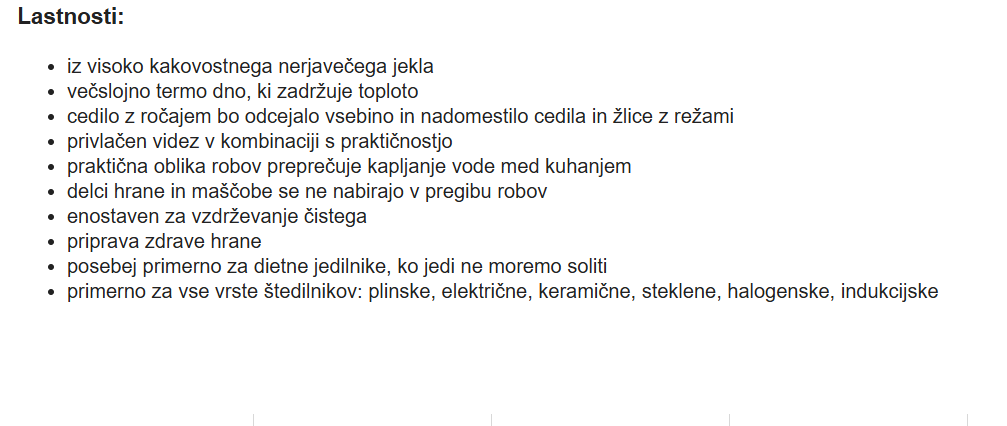 Set vsebuje: lonec, cedilo z ročajem, steklen pokrov.